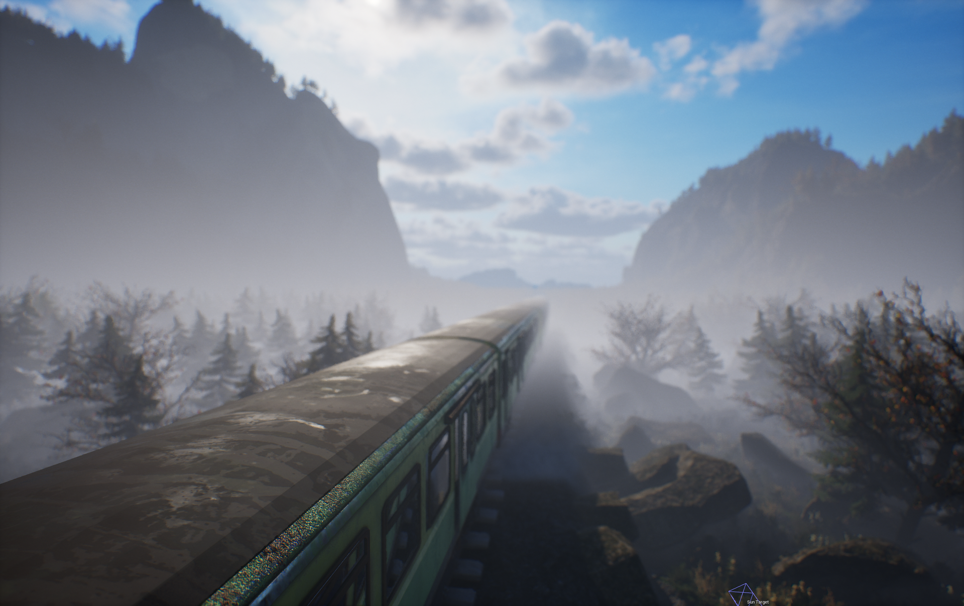 Moody scene with mountain terrain and Dart train, I modelled the train as one asset and made textures from scratch in Substance painter. As I used it in a game in UE 5 its low polly enough to not impact the performance too much even with 4k texture and collisions however now I would make it modular just for comfort of work in EU 5 with modular assets.