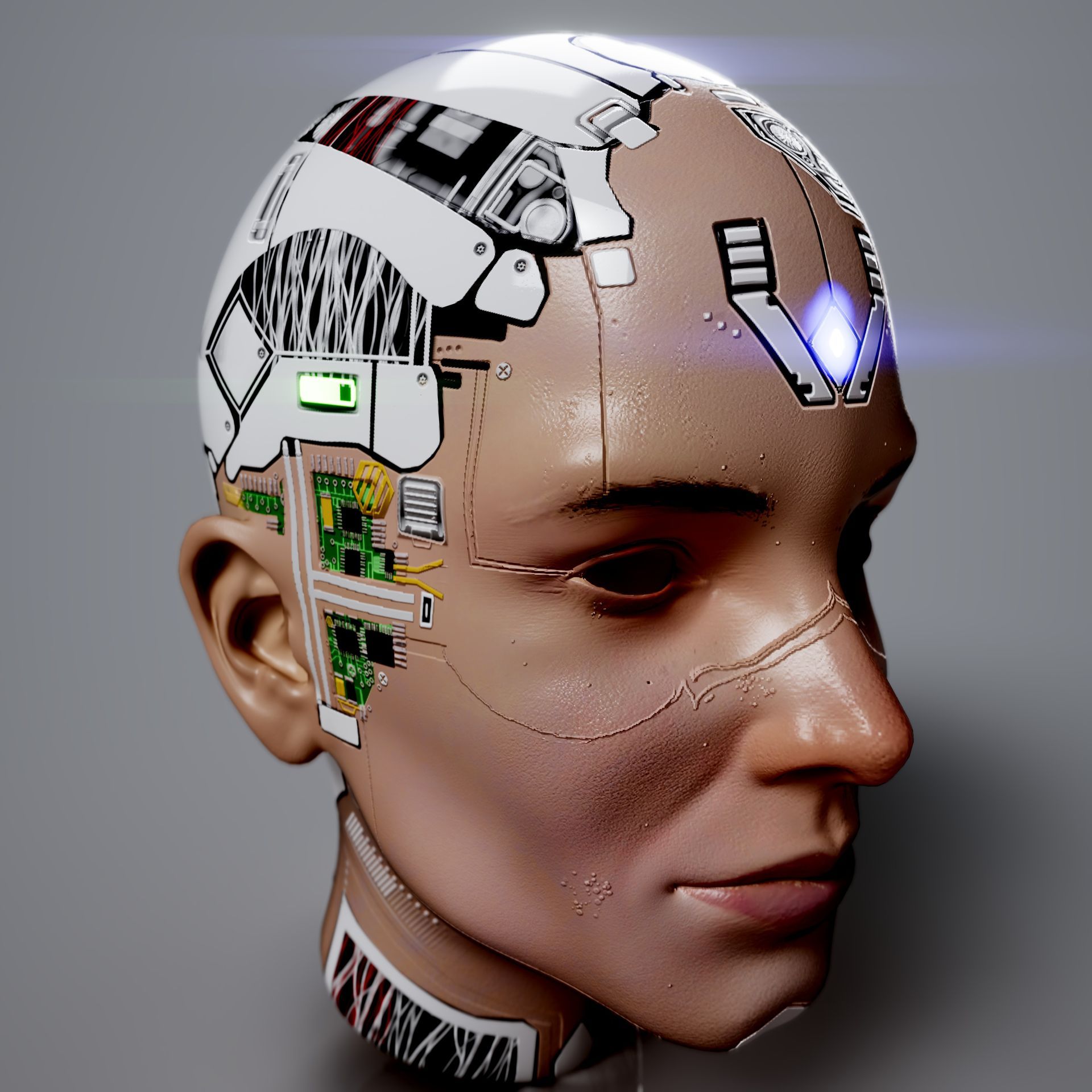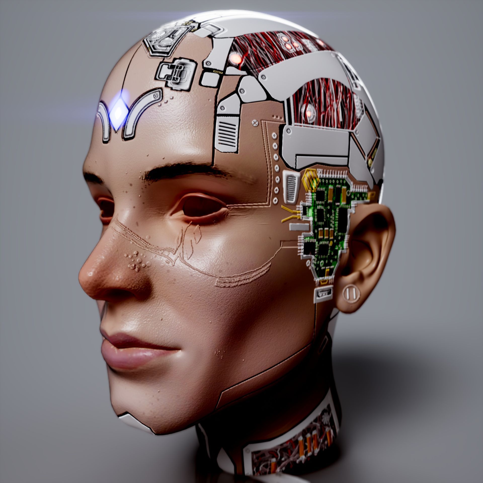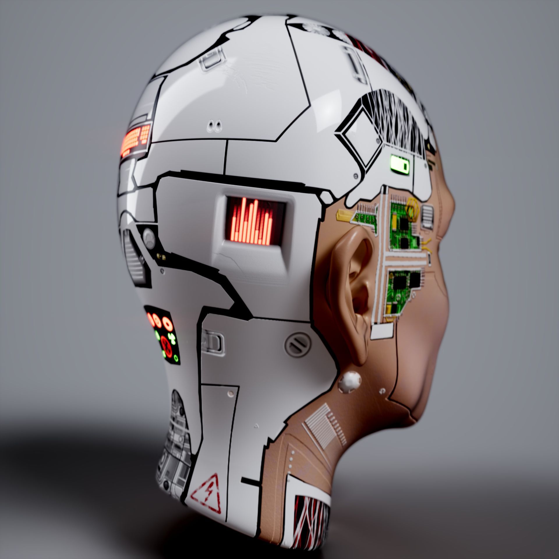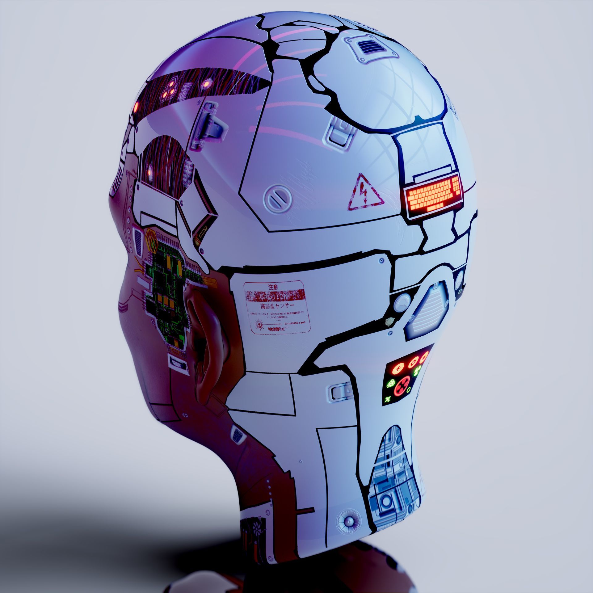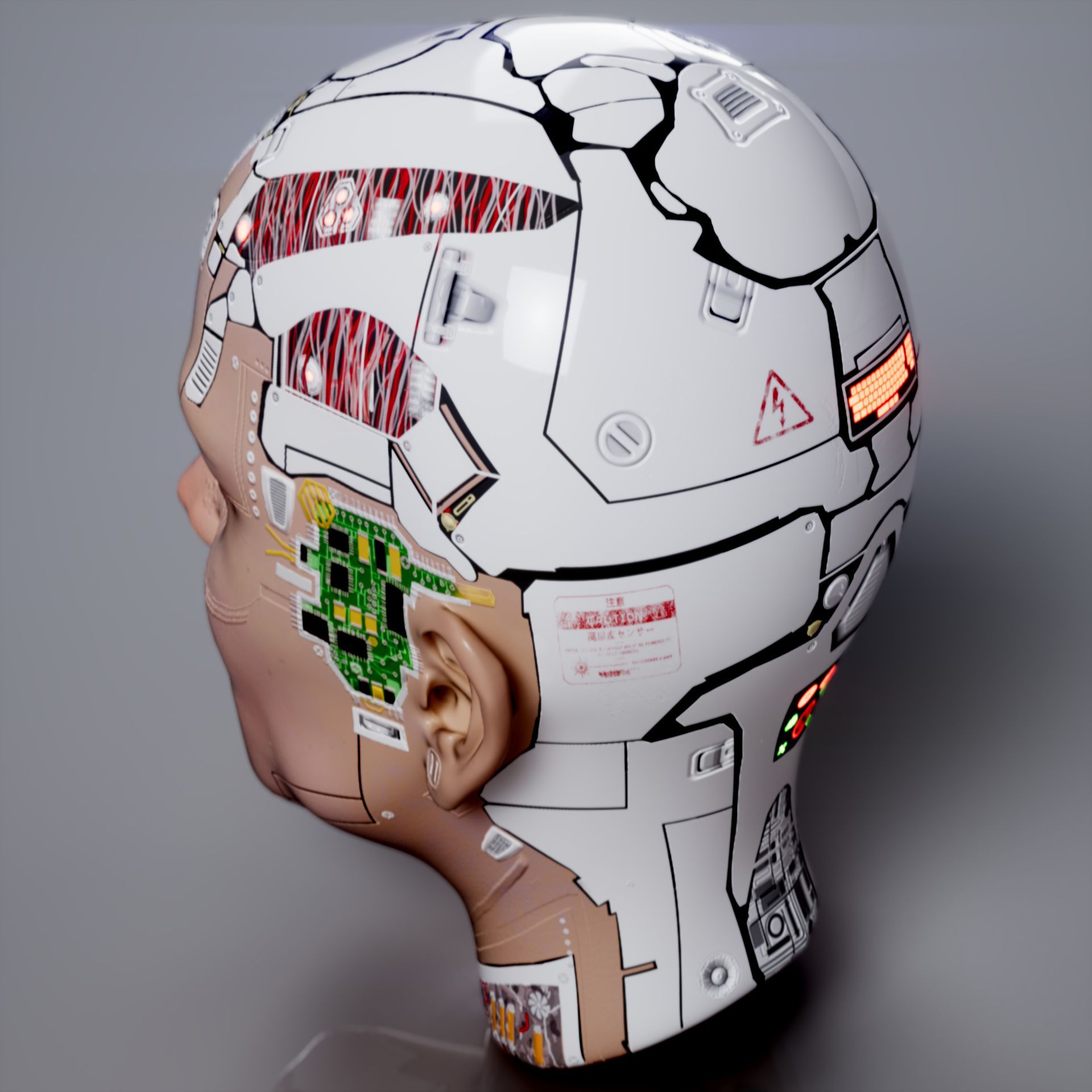 Exercise in texturing. I wanted to have a cyborg, cyberpunk looking tribe woman. In this piece I tried to focus on texturing skin tones and making cyborg plastic and mechanical parts. What I enjoyed the most is making detail on the circuit board on the side of her head. I used generic head model, textured it in Substance Painter and rendered in Unreal engine 5.4.